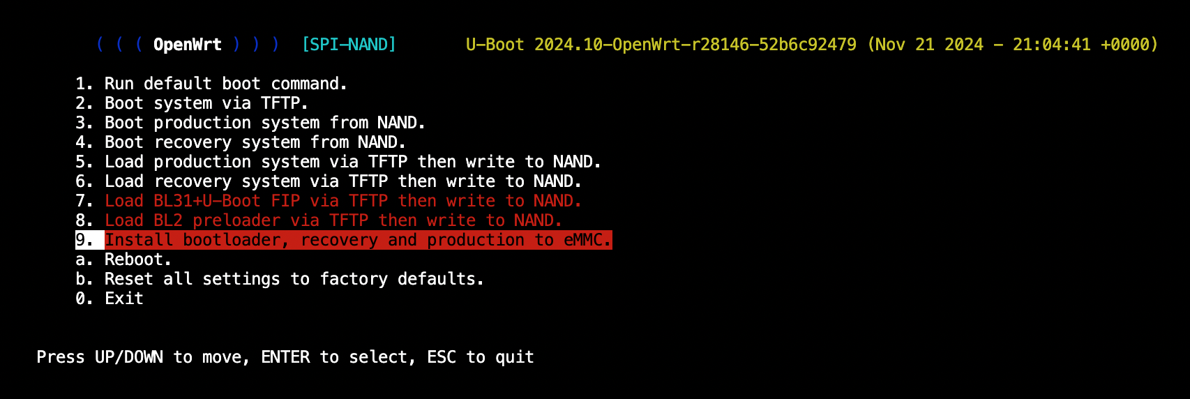 Turn on the router and grab the boot menu. The boot menu should now display SPI-NAND.